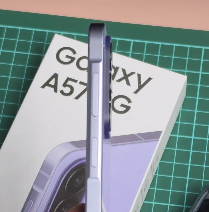 Fokus utama perombakan desain pada Galaxy A57 5G adalah ketipisan dan ringan sehingga nyaman digenggam. Ponsel ini resmi dinobatkan sebagai model tertipis dalam sejarah lini Galaxy A, memastikan pergelangan tangan pengguna tidak mudah lelah saat bermain gim intensif atau membuat vlog seharian.