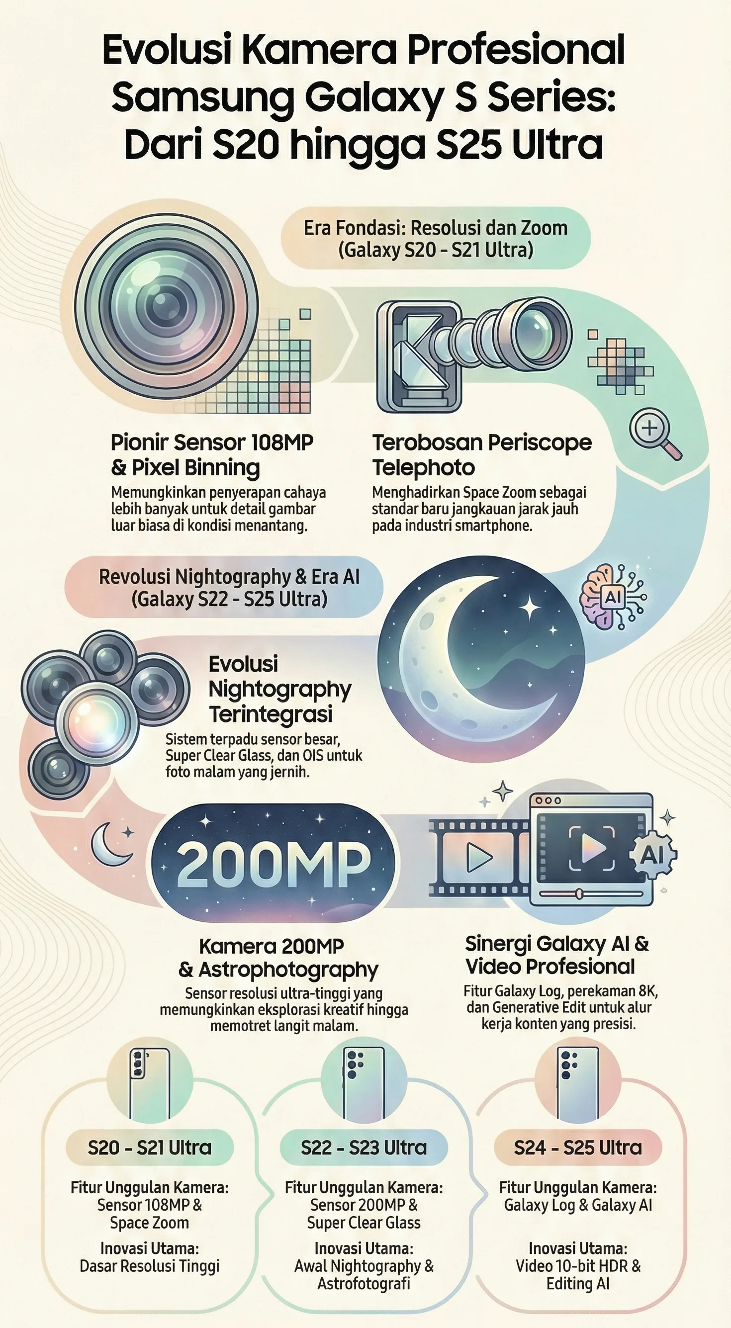 1. Fase Fondasi (Galaxy S20 & S21 Ultra) Fokus pada resolusi tinggi dan jangkauan zoom.