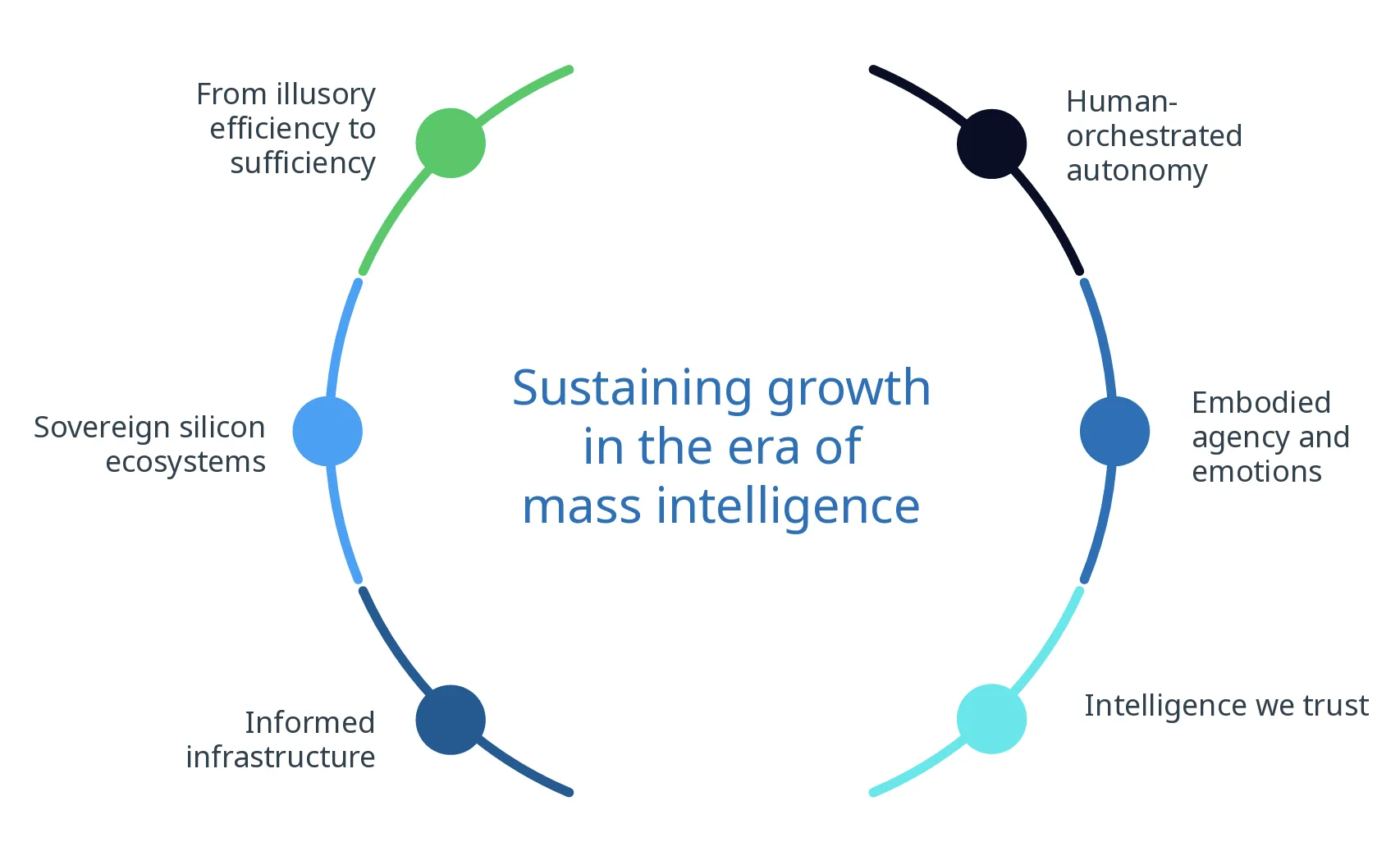 Otonomi yang Dipimpin Manusia: Sistem cerdas kini mampu beroperasi dalam skala besar dan cepat. Namun, kendali dan arahan manusia tetap menjadi syarat mutlak untuk memastikan transparansi keputusan serta keselarasan dengan tujuan perusahaan dan nilai-nilai sosial.